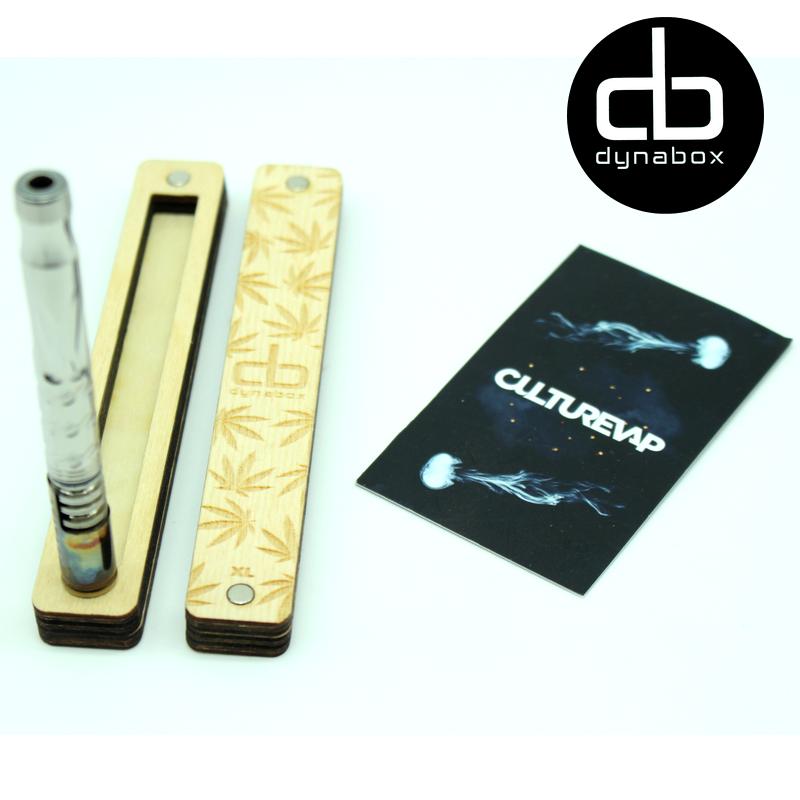L'étui de transport, et support pour Vapcap Dynavap taille "XL". Ce boîtier en bois se referme avec des aimants puissants, qui permettront d'utiliser le boîtier également comme support pour le refroidissement.