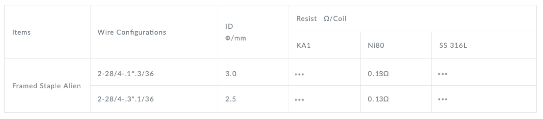 Frame staple Alien : fil complexe de 5 fils plats enroulés d'un fil en 28 ga à 0.13Ω en ni80.